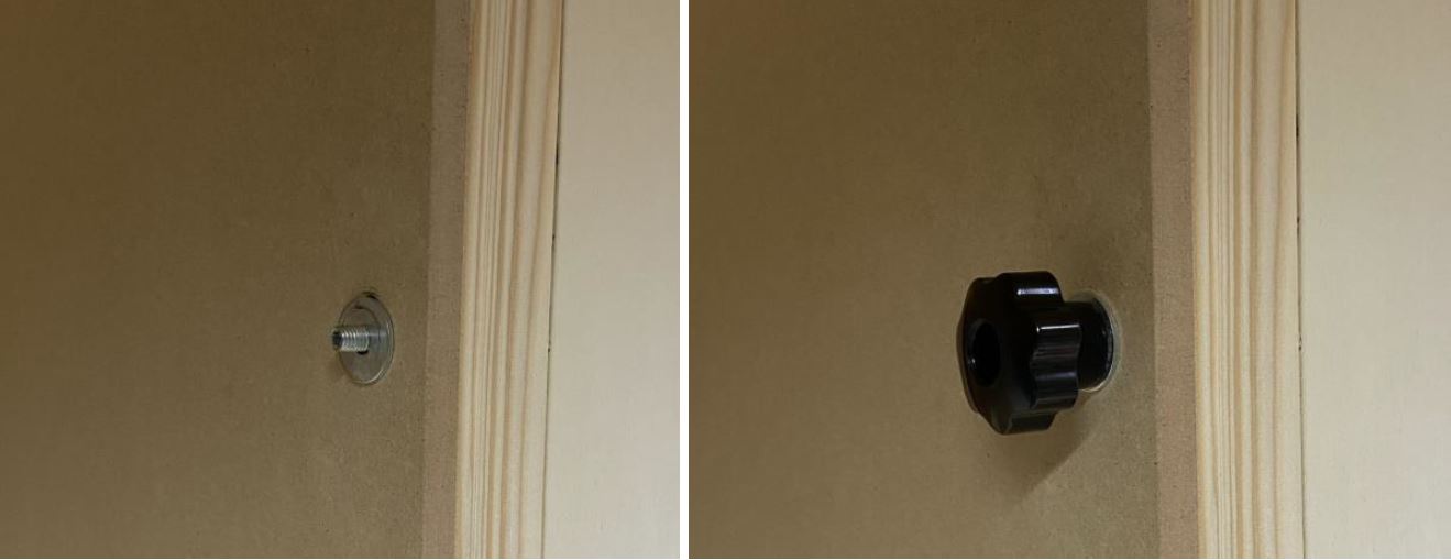 Seitenwand mit der Rückwand zusammenstecken und mit Schraubknopf fixieren. FERTIG